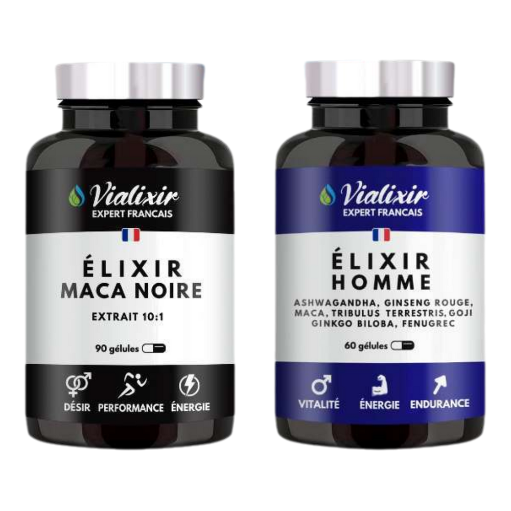 Ce pack associe ÉLIXIR HOMME et MACA NOIRE, deux formules naturelles riches en plantes actives. Bien qu’ils apportent un soutien global en agissant sur le bien-être intime, l’énergie, et la circulation sanguine, il est important de prendre certaines précautions :